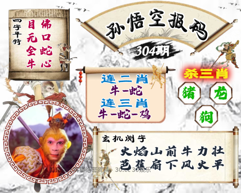 304期推荐⑨肖:羊兔猴蛇猪牛龙马鸡